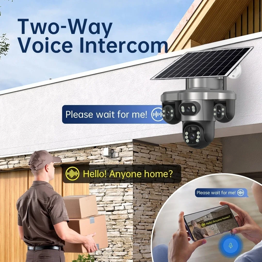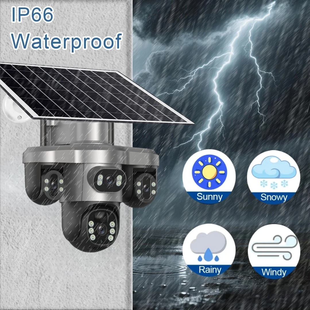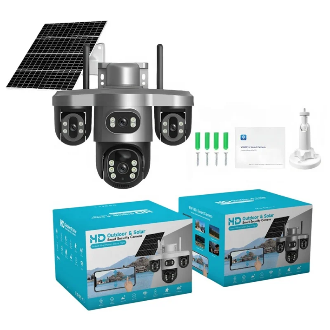 Caméra à batterie solaire 9MP à quatre lentilles et trois écrans PTZ 4G