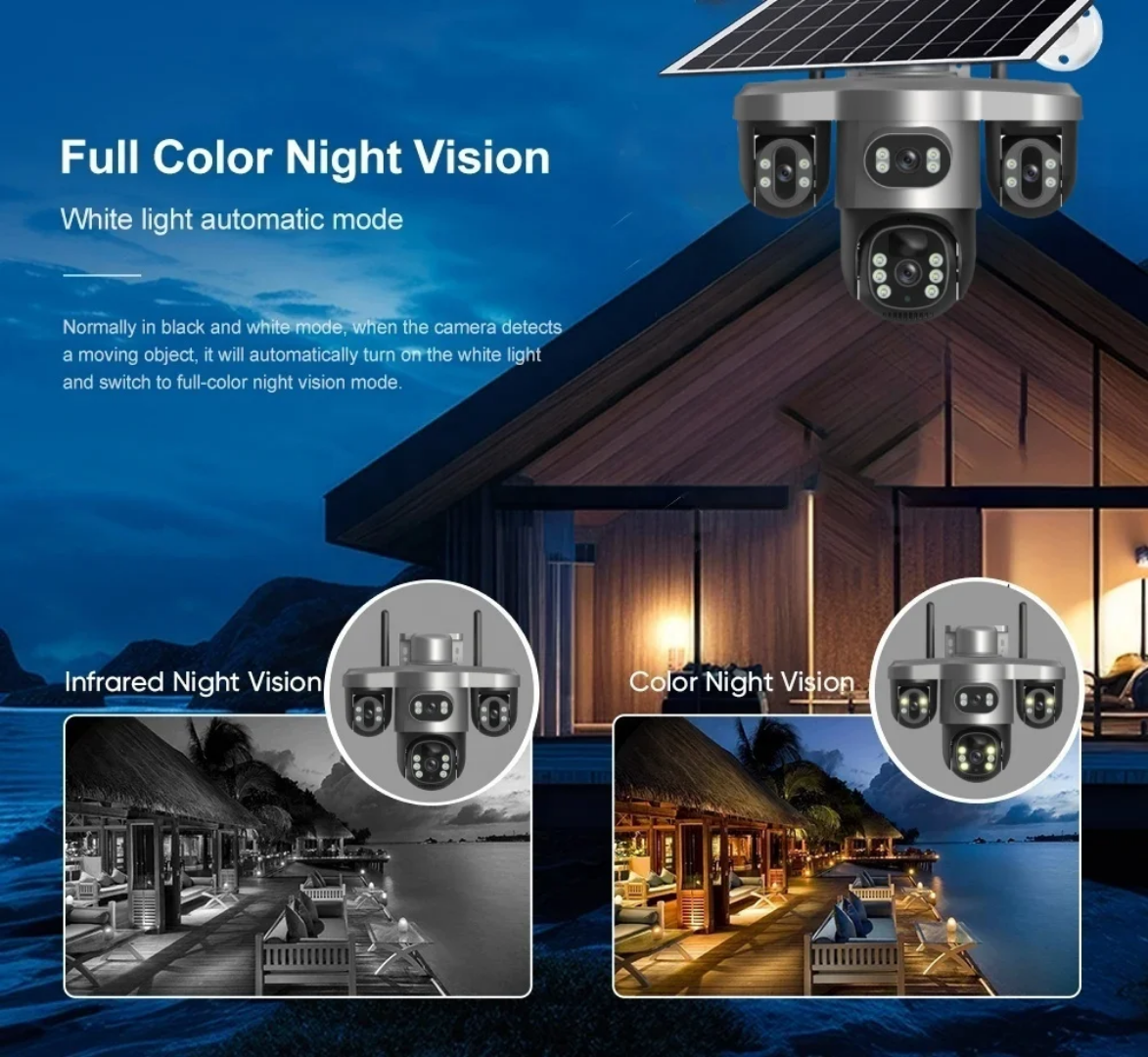 Caméra 4G solaire 3 en 1 objectif autonome Simultanément